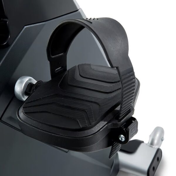 Built to last, the CR900 Recumbent Bike takes workout ease and comfort to a new level. Step-through design makes it easy for all users to enter and exit the bike. Moulded foam seat that adjusts along the seat rail and quick ratcheting pedals make it easy to get on and go. Commercial crank assembly and extra-large roller bearings provide fluid pedal motion.
